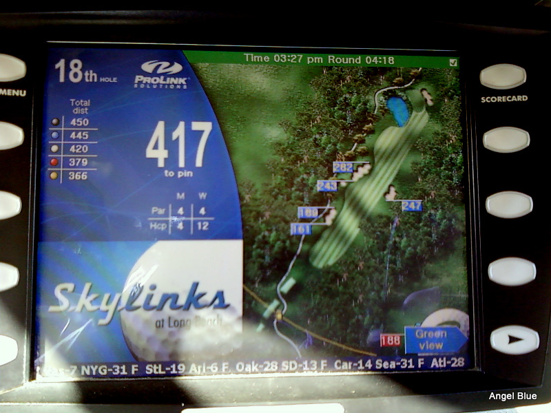 バンカーや池までの距離も教えてくれるのも、親切ね。